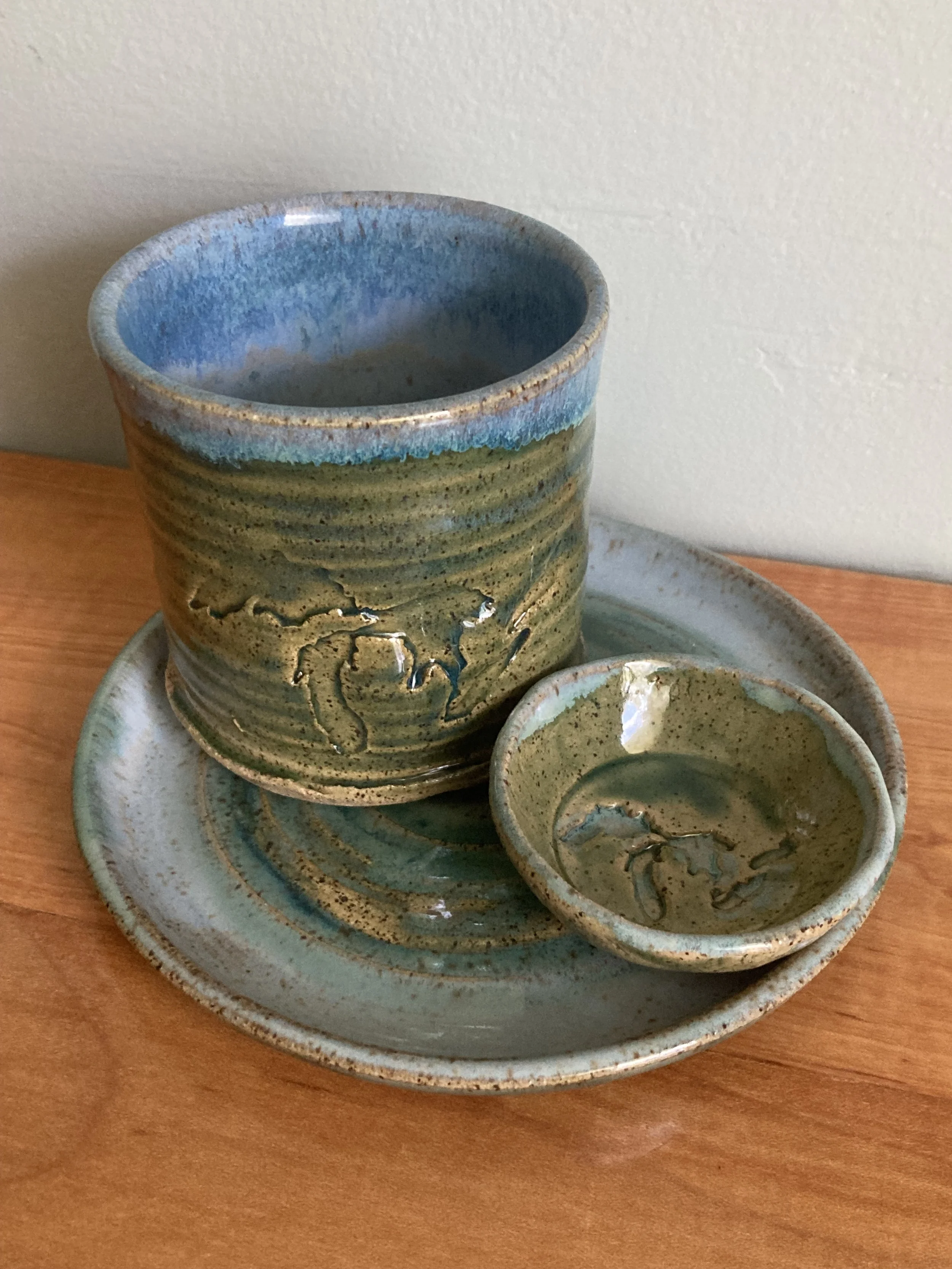 "As a ceramic artist I create sculptural pieces designed to express an idea as well as functional pottery for people to enjoy in their everyday life. Both my sculpture and my pottery practice involve creating a similar form over and over again. When I am forming small sculptural elements inspired by nature or putting handles on cups, the repetition is soothing, like watching and listening to waves washing up on the shore.